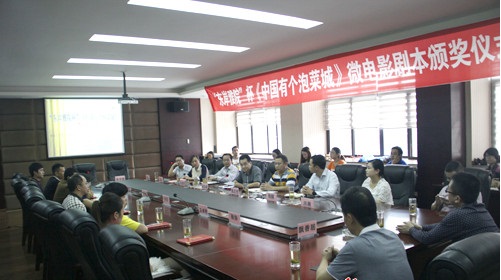 2014年8月26日上午9:30点,由万景东岸雅院 独家赞助和冠名的“东岸雅院”杯《中国有个泡菜城》微电影剧本颁奖典礼正式开始。 眉山中国泡菜城党工委副书记吴吉辉、党工委委员贺正良、万景东岸雅院营销副总税醒、旅游与品牌发展办公室相关人员以及中国泡菜城的相关相关企业(飘香居、川南、邓仕、惠通),本次微电影剧...