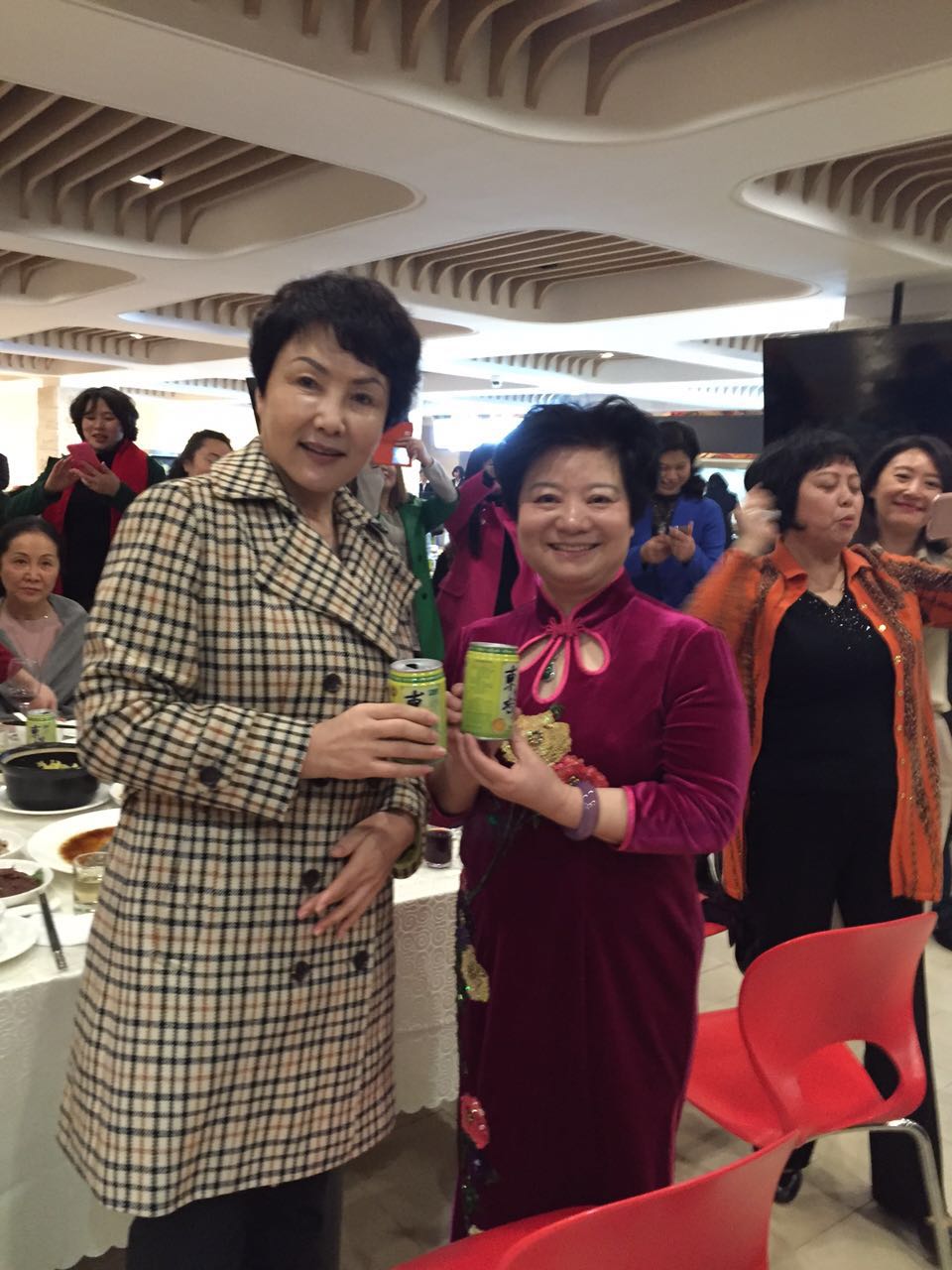 她就是何明华。此时的她,是应影片《最后的棒棒》的导演何苦邀请前来,向参加年会的棒棒朋友们赠送东杏凉茶和过年礼品的。
