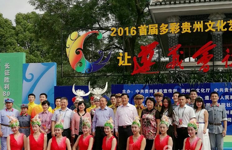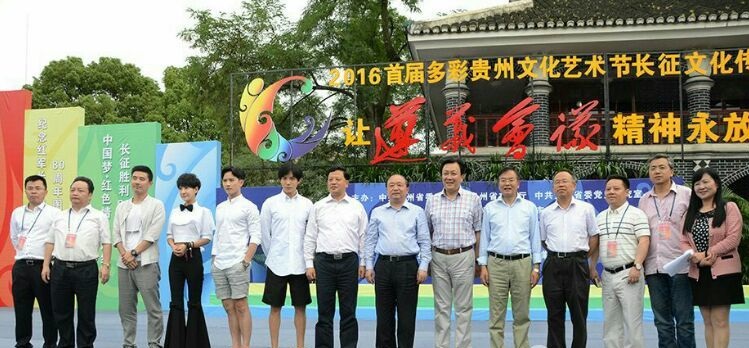 中央文献研究室副主任陈晋,贵州省委常委、宣传部长张广智,贵州省委常委、遵义市委书记王晓光,贵州省文化厅党组书记、厅长徐静与中国著名演员唐国强,贵州广电集团北京经纬星影视公司总经理陈彬,贵州向黔进影视公司总经理莫江涛等剧组主创人员合影留念。
