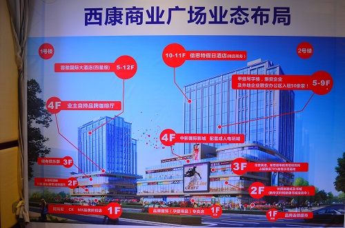 西康商业广场着力打造为独具特色的四大中心(亲子教育培训中心;休闲购物体验中心;餐饮、娱乐、休闲会客中心;商务、办公、酒店接待中心)、八大功能(集特色商品、商请咨询、产业服务、活动会展、电子商务、休闲娱乐、品牌餐饮、酒店办公)。