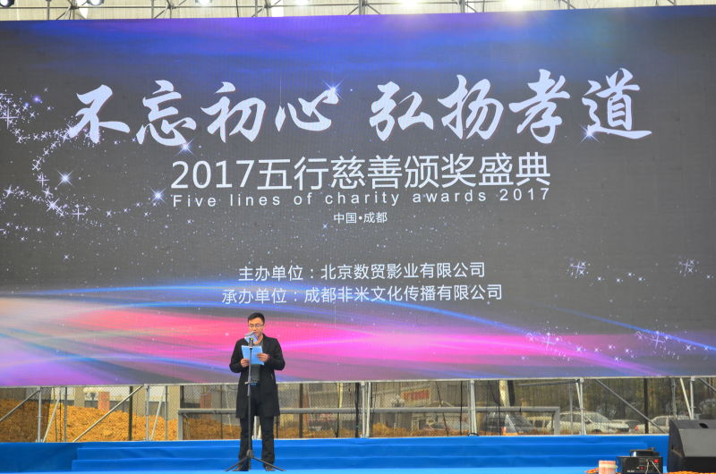 12月29日,由北京数贸影业、四川省微电影艺术协会主办的“不忘初心,弘扬孝道”2017五行慈善颁奖盛典在四川成都市恒大金碧天下足球场隆重举行。对做出孝道和慈善的典型人物人进行了表彰和颁奖。