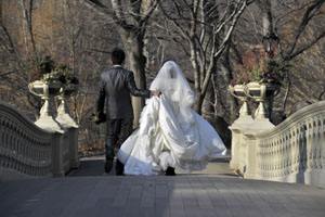 主持人抬腕看了一下时间,提示婚礼时间到了。礼堂门口,迎宾人员全部进入大厅。新娘握了握新郎的手,与父亲走到礼台另一端。