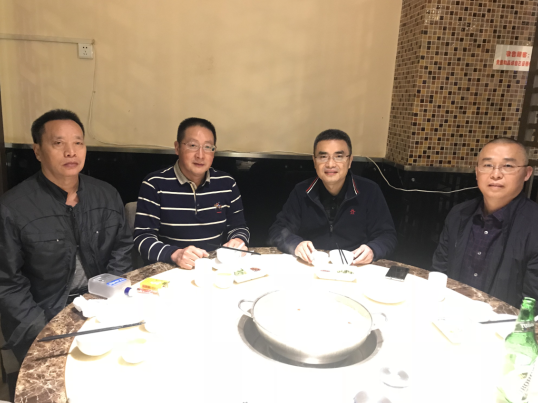 图图14、重庆丁氏宗亲会丁大镛宗长(右一)、丁德毅宗亲(左二)、丁宁勇宗亲(右一)、四川省微电影艺术协会、贝升建材董事长丁军(右二)分享潮州市丁允元文化研究会,探讨丁氏宗亲会长年发展大计。