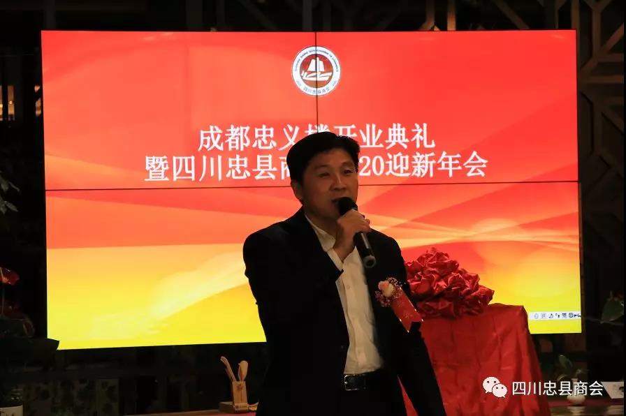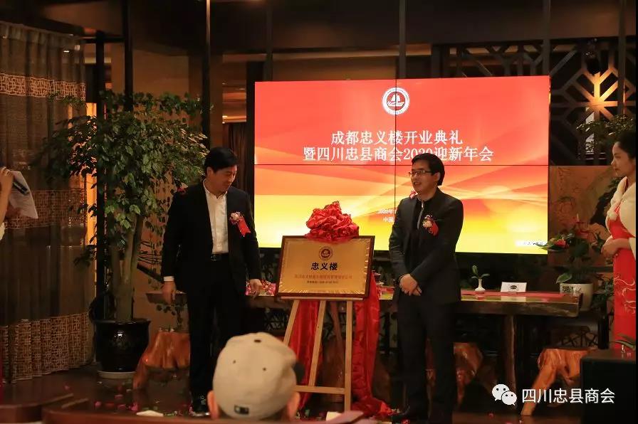 四川忠县商会会长郭代军、忠义楼董事长颜明华共同为忠义楼揭牌致辞。