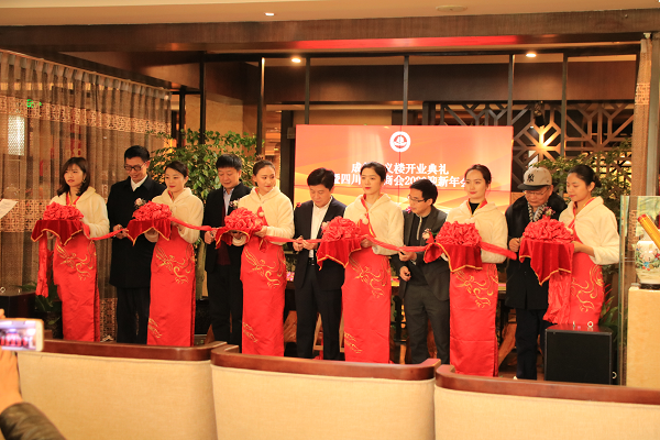 四川忠县商会会长郭代军、忠义楼董事长颜明华、成都市民政局原副局长秦敬人、名誉会长叶飞、成都石室中学高级教师邓学平共同为忠义楼开业剪彩。