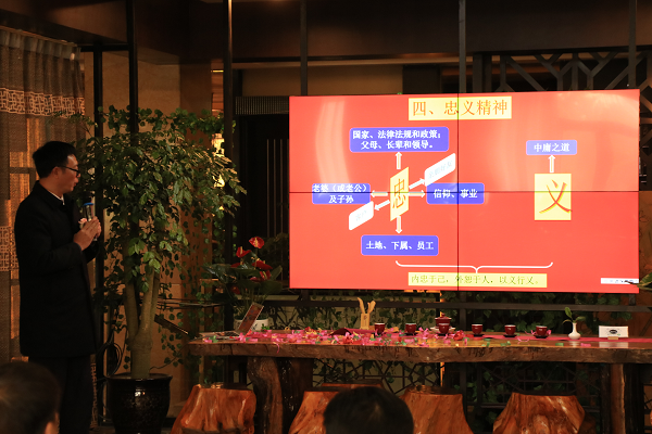 忠义楼股东代表、成都石室中学高级教师邓学平用形象生动的比喻,结合历史名人、地域文化和社会经济等,诠释了忠义楼的初衷和情怀。他说,忠义楼深藏丰富的文化内涵,以“忠”字命名的心灵港湾,当有义薄云天的胆略和气魄。这是家的归宿,当有家乡味道。
