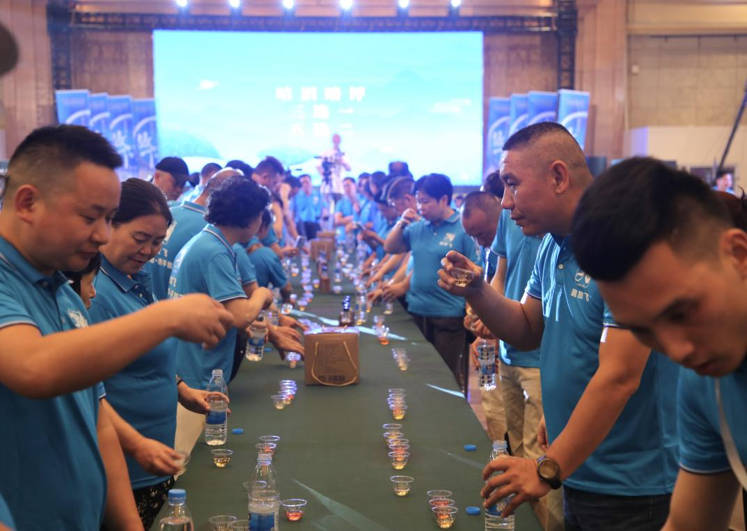 (与会者争相品鉴放飞花果酒)